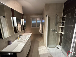 Olivier Poupart 07 77 68 33 36 A Racrange ( proche de Morhange ) commune qui dispose de toutes les commodités ( commerces , écoles , professions médicales et même une gare SNCF... ) cette belle et spacieuse maison de plain pied F4 de 122 m² habitable ( hors terrasse couverte ) va vous séduire par ses nombreux atouts Dans une rue calme et résidentielle, elle est de plain pied , en parfait état , dispose d'une immense terrasse couverte baignée de soleil grâce à ses grandes baies vitrées , d'une dépendance de 38 m² , d'un garage avec fosse ... Cuisine équipée , salle de bains avec douche et baignoire. Construction et matériaux de qualité. Possibilité de créer un appartement avec entrée indépendante. Parcelle de terrain de 970 m². DPE en C et C ( avant l'installation de la pompe à chaleur ) Pompe à chaleur installée en 2024 et isolation améliorée. Elle est sûrement pour vous !! Pour + d'informations , merci de me contacter.