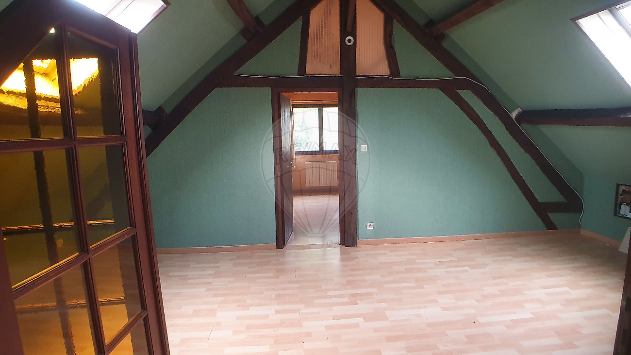 A l'étage, d'un côté une chambre et de l'autre côté un palier dessert 3 chambres et un wc.