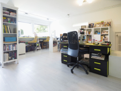 Au rez-de-jardin : Grande pièce lumineuse d'env. 45m2 (idéale pour une activité professionnelle, sportive ou artistique) avec entrée indépendante. Buanderie, chaufferie, cave, atelier, wc, grande terrasse sans vis-à-vis orientée Sud-Ouest et accès jardin.
