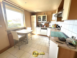 EFCO IMMO à le plaisir de vous proposer cette maison de 84m2 sur Wittenheim. Il s'agit d'une maison jumelée en fin de rue avec un terrain donnant sur les champs. Elle se compose au RDC: d'une entrée avec couloir donnant sur un grand salon / salle à manger avec une grande terrasse couverte d'un store, une cuisine équipée et un wc. A l'étage: deux grandes chambres avec possibilité d'installer un WC et une salle de bain et comble aménagable. Une grande cave, sur toute la surface bétonnée avec une buanderie et salle d'eau. La surface de terrain est de 685m2 totalement clos, une entrée sur l'avant avec portail proposant 2 places de parking est sur l'arriére, un garage construit en dur avec un portail indépendant ainsi qu'un abri de jardin. L'agence Efco Immo se fera un plaisir de répondre à vos questions et vous faire visiter ce bien ! Les informations sur les risques auxquels ce bien est exposé sont disponibles sur le site Géorisques : www.georisques.gouv.fr