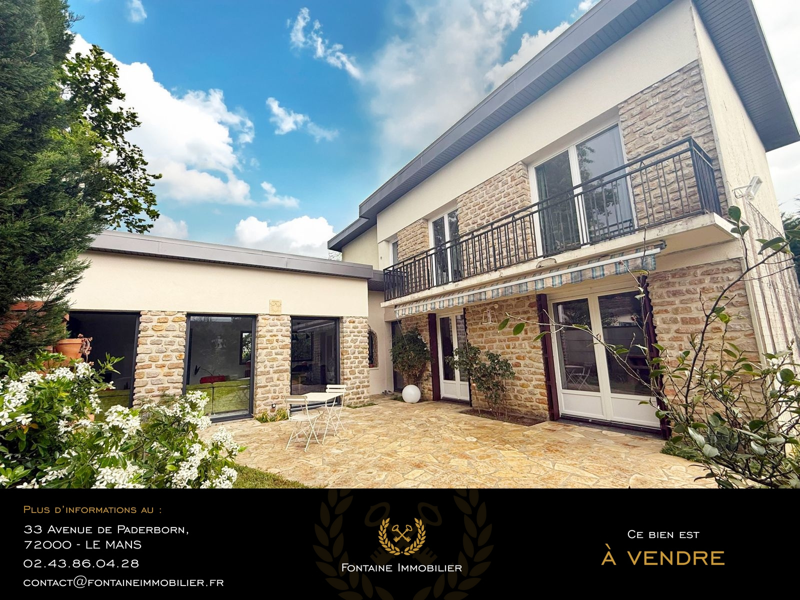 Votre agence Fontaine Immobilier vous propose à seulement quelques minutes du Mans secteur Nord (La Bazoge), cette superbe maison de 214 m2, à remettre au goût du jour, s'inscrit dans un cadre bucolique et privilégié. Dès l'entrée, on découvre une maison aux volumes généreux qui comprend : une entrée, une vaste pièce de vie offrent une vue dégagée sur le parc paysager. Une cuisine fonctionnelle avec coin repas, deux chambres dont une avec dressing, une salle d'eau ainsi qu'un wc indépendant. À l'étage, un bel espace mezzanine surplombe la pièce de vie , deux chambres supplémentaires, une salle de bains, wc. En complément, la maison dispose d'un sous-sol complet comprenant un grand garage, un atelier, et des espaces de rangement. À l'extérieur, vous disposerez d'une grande dépendance avec eau et électricité ainsi qu'un parc arboré d'environ 6 000m2 à l'abri des regards. Les informations sur les risques auxquels ce bien est exposé sont disponibles sur le site Géorisques : www.georisques.gouv.fr