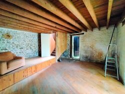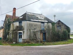 A proximité de la voie verte, maison d'habitation à rénover comprenant une cuisine avec cheminée, un séjour, à l'étage : dégagement, salle de bains avec wc, 2 chambres ; par la cuisine accès à la grange avec un grenier ; autre dépendance couverte en tôles avec une cave ; Sur un terrain de 600 m²