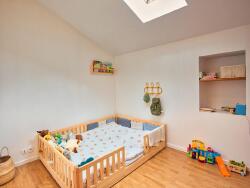 A l'étage, un palier de 4 m² dessert deux chambres et une salle de bain.