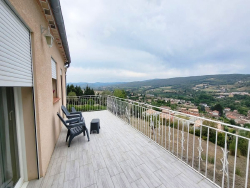 Grand double séjour/salon donnant accès à une belle terrasse orientée plein sud avec vue sur les Pyrénées et sur Limoux, cuisine avec accès à la terrasse, hall d'entrée, 3 belles chambres avec placard, un grand dressing, une grande salle de bain avec baignoire et douche italienne, un WC séparé avec lavabo et un accès par l'intérieur au grand sous sol.