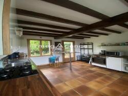 Belle exposition pour la terrasse et le grand jardin avec arbres fruitiers, potager et abri à bois.