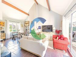 Vous serez séduit par son séjour cathédrale lumineux et sa cuisine moderne A/E donnant tous deux sur un bel espace jardin/terrasse et un coin jacuzzi. Egalement en RDC, vous pourrez profiter d'une belle suite parentale avec dressing et sa salle d'eau avec douche à l'italienne. Buanderie, garage double et un wc complètent le rez-de-chaussée. A l'étage, un palier desservant 2 chambres spacieuses avec rangements, une salle de bains, un wc séparé et une mezzanine pouvant faire office de bureau ou de coin lecture. Possibilité de créer une 4ème chambre dans les combles. Radiateurs électriques, fenêtres PVC double vitrage, volets roulants électriques. Climatisation dans les chambres. 2 places de stationnements devant la maison en plus du garage. Commerces et écoles (maternelle, primaire, collège et lycée) à proximité.