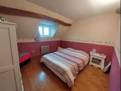 À l'étage, un palier mène à trois chambres, dont deux pourvues de placards, ainsi qu'à une salle d'eau et un WC indépendant.
