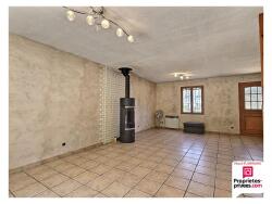 Au RDC : une pièce de vie de 34 m² avec son poêle à bois, 2 chambres, une cuisine ouverte aménagée et équipée, un cellier, une salle de bain, un wc.
