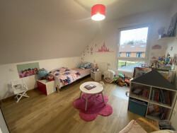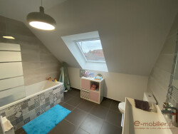A l'étage, découvrez 2 chambres, la salle de bain et un bel espace parental (chambre, douche, dressing) de 25m².