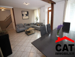 Charmante maison ancienne meublée, élevée sur cave, comprenant au rez de chaussée : beau séjour - salle à manger, cuisine aménagée et équipée avec sa verrière, salle de bains et wc. A l'étage : couloir desservant trois chambres et un wc. Jardin. L'ensemble sur 375 m². Libre à partir du 11 mai 2026.