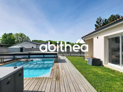 CM_1742 Maison contemporaine plain-pied | 100 m2 | 3 chambres | 1470m2 terrain | Piscine Au coeur d'un quartier très calme et discret sur la commune de Clam, Abithéa Charente-Maritime a le plaisir de vous présenter cette très jolie maison contemporaine individuelle construite en 2023 suivant la norme RE2020, idéalement située entre Jonzac et Pons cette très jolie neuve ne pourra que vous séduire. -------------------------------------------------------------------------------------------------------------------------- PLAIN PIED DE 3 CHAMBRES -------------------------------------------------------------------------------------------------------------------------- La terrasse bois de 60m2 et la piscine 8x4 avec abri rétractable seront un vrai plus pour lprofiter pleinement des extérieurs. La piscine est accessible de la pièce à vivre ainsi que de la chambre parentale, un vrai plaisir dès lors que l'on ouvre les yeux le matin. L'entrée de cette maison individuelle ouverte sur une agréable pièce de vie lumineuse de 43 m2 exposée sud-est et donnant sur la terrasse. Une cuisine ouverte aménagée et équipée, vous offrira des moments conviviaux et de partage autour de son îlot central. L'espace nuit se divise en 2 parties distinctes : - 2 chambres et une salle d'eau avec double vasque et wc séparé. - une belle grande suite parentale offrant un maximum d'intimité, celle-ci vous charmera avec son grand dressing et sa spacieuse salle d'eau. La pompe à chaleur gainable vous offre un confort optimum tout comme le reste des prestations de cette habitation. Cette maison n'attend que vous, venez la découuvrir sans attendre et le vrai plus de cette maison, elle est vendue entièrement meublée. -------------------------------------------------------------------------------------------------------------------------- DPE : A GES : A -------------------------------------------------------------------------------------------------------------------------- La maison bénéficie également d'un carport permettant en plus des stationnement en extérieur d'un stationnement sécurisant avec un accès direct à la maison. Cette agréable maison vous est proposé au prix de 325.000 euros dont 4.16% d'honoraires à la charge de l'acquéreur. Si vous souhaitez en savoir plus : contactez dès à présent votre conseiller Michaël CLAIRTEAU au 06.03.18.49.40 Les risques auxquels ce bien est exposé sont disponibles sur le site georisques www.georisques.gouv.fr inscrit au RSAC de Saintes 940944275.