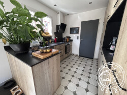 Au rez-de-chaussée, vous serez séduit par la cuisine aménagée et équipée, idéale pour les passionnés de cuisine. La vue sur le jardin et la terrasse depuis la cuisine vous offrira des moments de détente inoubliables. Le salon et la salle à manger, baignés de lumière grâce à leur exposition sud, sont parfaits pour des soirées conviviales.