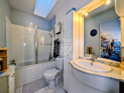 Description du bien : - Maison mitoyenne de 2006, d'une surface généreuse - Au rez-de-chaussée : un agréable salon-séjour lumineux avec poêle à granulés, une cuisine indépendante fonctionnelle, complétée par une arrière-cuisine pratique, un WC séparé et un accès direct au garage. - À l'étage : quatre chambres avec placards intégrés, une salle de bains avec WC. - À l'extérieur : deux jardins, l'un exposé sud pour profiter du soleil, l'autre au nord pour la fraîcheur estivale, ainsi que deux places de stationnement privatives.