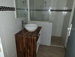 Elle se compose de la manière suivante : en rez-de-chaussée : une véranda, une pièce de vie avec cuisine ouverte meublée et équipée d'une hotte et d'une plaque électrique, un dégagement, un WC indépendant et une buanderie.