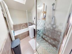 À l'étage, l'espace nuit propose 2 belles chambres, une salle d'eau avec baignoire et douche ainsi qu'un WC séparé pour plus de confort.