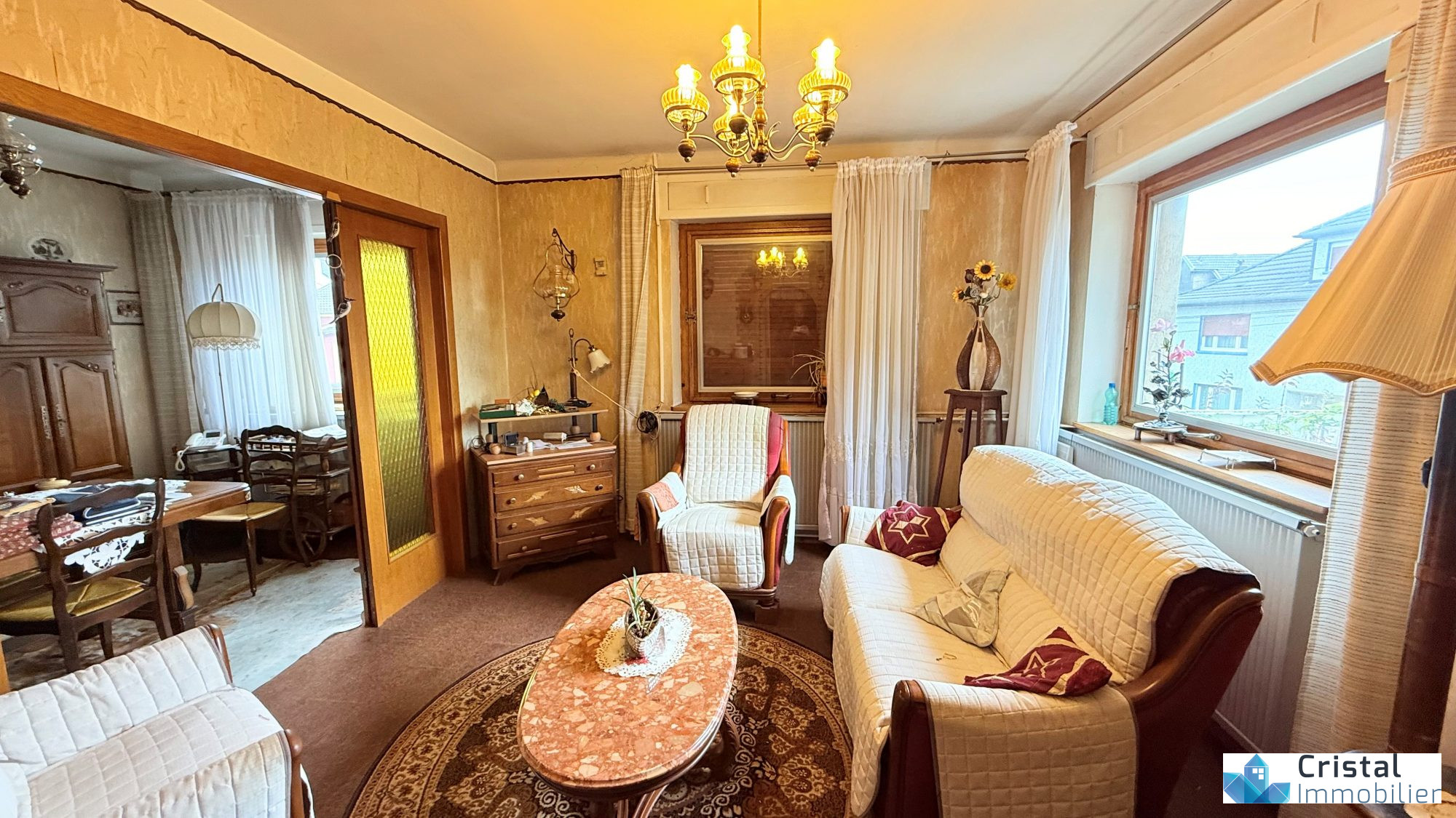 Au Rez-de-chaussée : L'entrée dispose d'un carrelage d'origine des années 50. le salon bénéficie d'un beau parquet en chêne, tout comme la chambre à coucher. La salle à manger est ouverte sur la cuisine et le salon, offrant un bel espace de vie de plus de 32 m2. Une salle d'eau avec toilettes complète le bien .