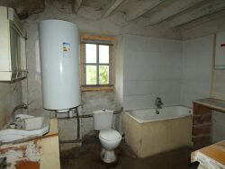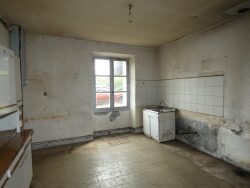 Une maison d'habitation construite en pierres et couverte en ardoises, mitoyenne d'un côté, à rénover, d'environ 95m² habitables, une cour sur le devant d'environ 210m² et un jardin sur l'arrière d'environ 550m² avec une entrée indépendante via une petite place.