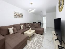 Le rez-de-chaussée comprend un vaste salon / séjour, une cuisine entièrement aménagée et équipée ainsi qu'une salle de douche avec un WC.