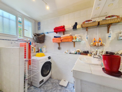 Elle se compose d'une entrée, d'un salon, d'une salle à manger, d'une cuisine récemment rénovée, de trois chambres, d'une salle de bains, d'une salle d'eau et d'un WC. Bien distribuée, elle bénéficie du double vitrage et du raccordement au tout-à-l'égout, gages de confort au quotidien.