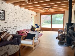 La maison s'organise sur 3 niveaux, avec de belles surfaces à vivre, de nombreux rangements, et une distribution fonctionnelle. Le rez de chaussée comprend le salon avec le poêle à bois , l'entrée, la salle à manger et la cuisine ainsi qu'un Wc et l'accès à la cave. Le 1er étage possède 3 chambres et une salle de bain dont une grande suite parentale avec coin bureau, dressing et salle d'eau, pour terminer un palier avec l'escalier permettant un coin détente supplémentaire. Le 2ème étage, une grande pièce ouverte avec une belle ferme de charpente apparente, ainsi qu'un WC avec point d'eau et deux chambres dont une avec un coin dressing.