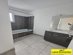 ONDRES, maison mitoyenne de type 4 DUPLEX partiellement meublée comprenant au rez de chaussée une entrée - cuisine ouverte, un WC + douche, un séjour offrant à l'accès à la terrasse ; à l'étage trois chambres dont deux avec placard de rangements, un WC séparé et une salle de bains. L'avantage de deux places privatives en plein air devant le logement.