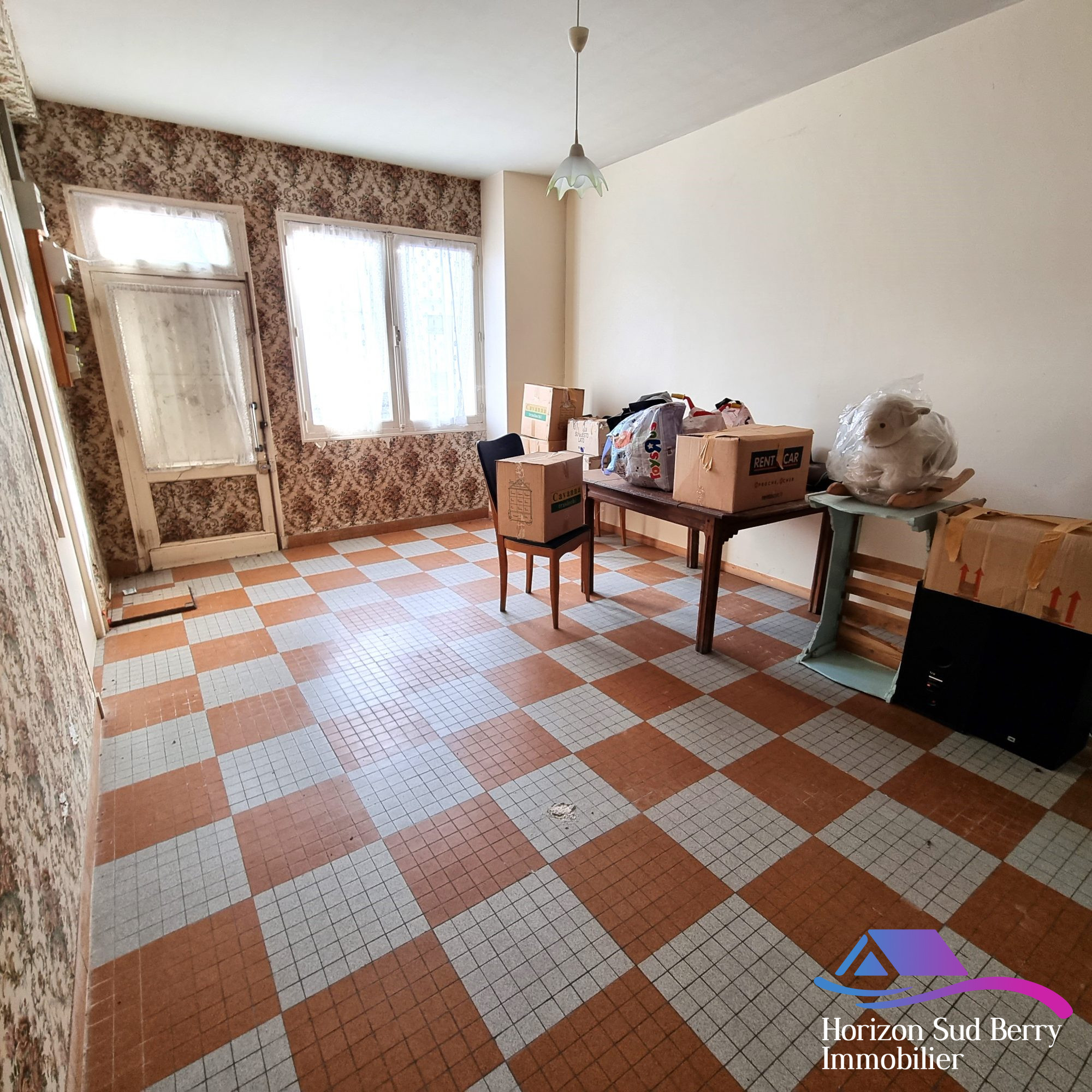 Maison composée au rez de chaussée d'un salon, une cuisine, débarras, couloir, salle d'eau, accès à une courette. A l'étage un couloir dessert trois chambres, un wc, une remise. Raccordée à l'eau et l'électricité. Pas de système de chauffage = non soumis DPE
