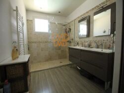 La maison est équipée de la climatisation et de fenêtres en PVC à double vitrage, garantissant un confort thermique optimal toute l'année. Elle est aussi équipée d'un poêle à granules. La connexion internet par fibre optique et les volets roulants électriques ajoutent à la modernité de cette propriété. Vous apprécierez également la sécurité apportée par l'interphone et le portail électrique.