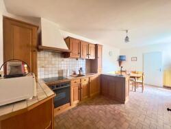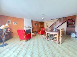 Vous trouverez au rdc, un salon-séjour avec cheminée à foyer ouvert, une cuisine A/E et une salle d'eau récente composée d'une douche, d'un vasque et d'un wc.