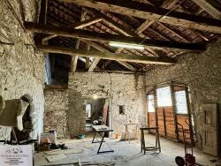 La deuxième partie de la maison est composée de grandes pièces avec charpente saine et apparente, de caves , de greniers , d'ateliers restant à rénover.