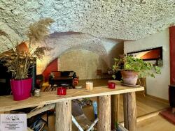 Au rez de chaussé, le grand séjour tout en voûte doté d'un poêle à bois et sa cuisine ouverte s'ouvrent sur un jardin exposé Sud.