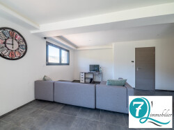 Elle se compose : - D'un sous sol complet avec garage 2 voitures ( porte motorisée)- espace atelier et buanderie - D'un RDC avec hall d'entrée - lumineuse et spacieuse pièce de vie de 48m² avec triple exposition ouvrant sur terrasse agrémentée d'une pergola rétractil avec stores de protection . WC avec douche - A l'étage : 3 chambres et salle d'eau/wc