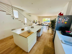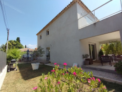 GABRIELE IMMOBILIER vous présente à la vente à SIX FOURS LES PLAGES à quelques minutes à pieds du centre ville une maison contemporaine de 2019 édifiée sur un terrain plat piscinable de 750M2 . Ce bien proche de toutes les commodités située dans une impasse se compose de deux logements avec leur terrasse respective . Une maison de type 4 de 110M2 comprenant au rdc une belle et spacieuse pièce à vivre séjour/ cuisine aménagée et équipée de plus de 55M2, un coin buanderie . A l'étage deux chambres dont une donnant sur une grande terrasse, une salle d'eau et un wc. Une maison de type 2 de 40M2 comprenant pièce à vivre séjour/ cuisine équipée et une suite parentale avec salle d'eau et wc. Vous trouverez tout le confort d'une maison encore sous décennale , un puit , pompe à chaleur , climatisation . Stationnement prévu pour 3 véhicules . Toutes les commodités à pieds ,la tranquilité , aucun travaux à prévoir , la dépendance est parfaite pour faire du locatif , à visiter sans tarder ! GABRIELE IMMOBILIER, immatriculé au RCS de TOULON no 978 318 087/ Référence annonce : 171 Les informations sur les risques auxquels ce bien est exposé sont disponibles sur le site Géorisques : www.georisques.gouv.fr