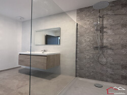 Surface totale de 122m² : Spacieuse et lumineuse, avec un grand salon ouvert sur une cuisine moderne, offrant un espace convivial et fonctionnel. Chambres : Trois chambres dont une suite parentale avec salle d'eau privative et espace dressing, idéal pour votre intimité et confort. Salles d'eau : Deux salles d'eau, parfaitement agencées. Buanderie : Un espace pratique pour le rangement et vos besoins quotidiens. Garage : Un garage privé pour sécuriser vos véhicules et vos affaires. Extérieur : Terrasse et jardin ensoleillée, parfait pour profiter de moments en plein air. Stationnement supplémentaire devant la maison. Énergie et chauffage : Équipée d'une pompe à chaleur et d'un système de chauffage et raffraichissement au sol, cette maison garantit une performance énergétique optimale, vous permettant de réaliser des économies sur vos factures tout en respectant l'environnement. Mitoyenne d'un coté