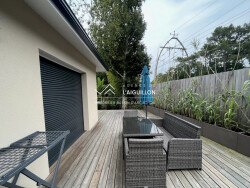 Découvrez cette maison neuve de plain-pied au coeur d'un environnement privilégié et verdoyant, offrant un calme absolu sans aucun vis-à-vis. Sa situation est idéale : la plage, la gare et les commerces de la Hume sont accessibles à pied. Profitez d'une pièce de vie lumineuse avec une superbe cuisine ouverte aménagée et équipée. Climatisation réversible et larges baies vitrées ouvrent le salon directement sur une grande terrasse en bois et un jardin paysager exposé Est-Sud-Ouest, parfait pour toute la journée. Un cellier attenant est également présent. La maison propose une suite parentale complète (dressing et salle d'eau privative) avec accès direct à la terrasse, ainsi que deux autres chambres avec dressing. Une salle de bain indépendante et des WC séparés complètent l'ensemble. Une place de parking complète ce bien.