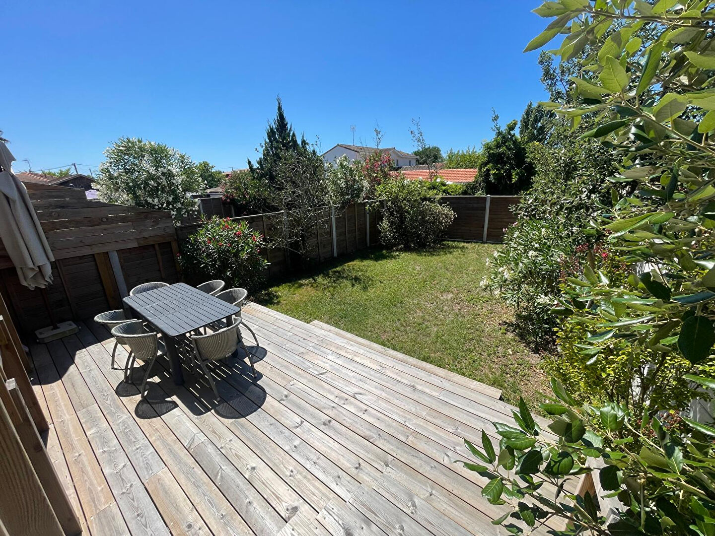 Découvrez cette maison neuve de plain-pied au coeur d'un environnement privilégié et verdoyant, offrant un calme absolu sans aucun vis-à-vis. Sa situation est idéale : la plage, la gare et les commerces de la Hume sont accessibles à pied. Profitez d'une pièce de vie lumineuse avec une superbe cuisine ouverte aménagée et équipée. Climatisation réversible et larges baies vitrées ouvrent le salon directement sur une grande terrasse en bois et un jardin paysager exposé Est-Sud-Ouest, parfait pour toute la journée. Un cellier attenant est également présent. La maison propose une suite parentale complète (dressing et salle d'eau privative) avec accès direct à la terrasse, ainsi que deux autres chambres avec dressing. Une salle de bain indépendante et des WC séparés complètent l'ensemble. Une place de parking complète ce bien.