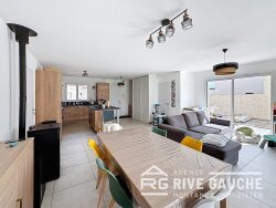 La maison dispose au rez-de-chaussée, d'un salon-séjour lumineux ouvert sur une cuisine moderne et équipée, ainsi qu'un WC indépendant. À l'étage, l'espace nuit se compose de trois chambres, d'une salle de bain et de WC indépendants.