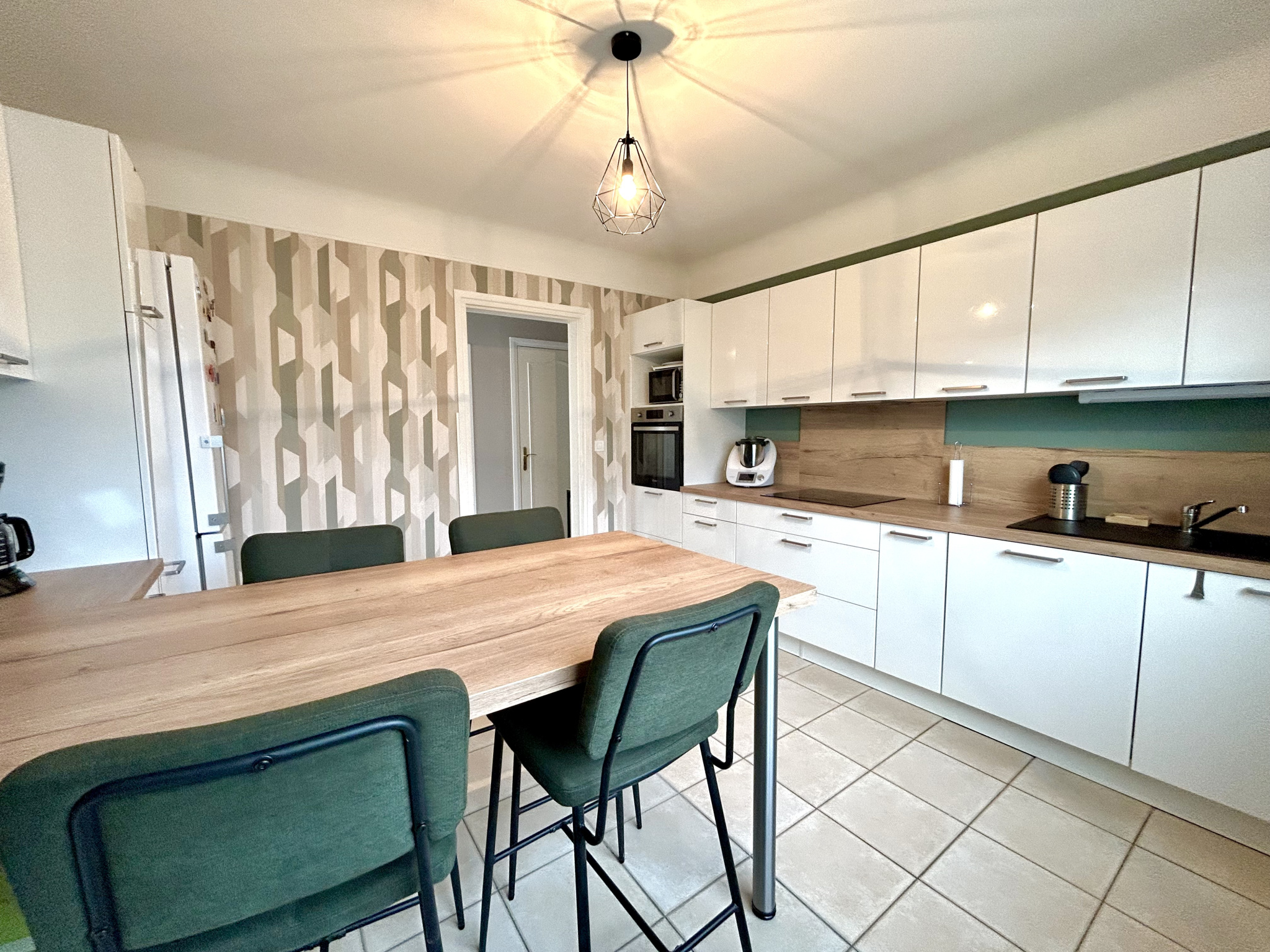 Surface de la pièce de vie : 55,58 m² Chambres : Trois dont une suite parentale Une salle de bain Un WC séparé Un garage : 32.54 m² Une buanderie : 7.33 m²