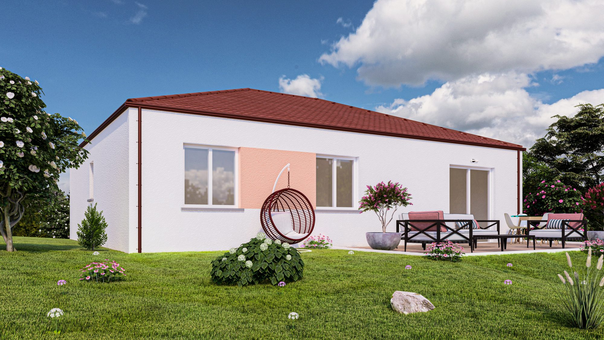 Les prestations comprises : Fenêtres et portes fenêtres PVC, baies coulissantes aluminium, volets roulants motorisés POMPE A CHALEUR avec plancher chauffant au sol Portes chambranles contre chambranles décorative Très bonne isolation permettant d'être conforme à la RE 2020 *Viabilisation et frais notaire non compris Garanties constructeur contrat de construction (CCMI)