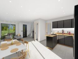 Caractéristiques principales Surface de la pièce de vie : 52,04 m² Chambres : Trois Une Salle de bain Un WC séparé Un Garage : 17.13 m² Buanderie : 5.38 m² Les prestations comprises : Fenêtres et portes fenêtres PVC, baies coulissantes aluminium, volets roulants motorisés POMPE A CHALEUR avec plancher chauffant au sol Portes chambranles contre chambranles décorative Très bonne isolation permettant d'être conforme à la RE 2020 *Viabilisation et frais notaire non compris Garanties constructeur Contrat de construction (CCMI)