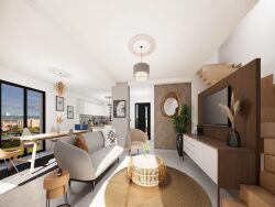 Les prestations comprises : Fenêtres et portes fenêtres PVC, baies coulissantes aluminium, volets roulants motorisés POMPE A CHALEUR avec plancher chauffant au sol Portes chambranles contre chambranles décorative Très bonne isolation permettant d'être conforme à la RE 2020 *Viabilisation et frais notaire non compris Garanties constructeur Contrat de construction (CCMI)