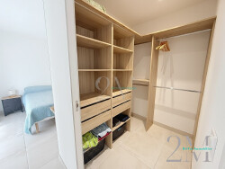 L'intérieur se compose d'un porche carrelé, d'une entrée avec placard aménagé, d'un cellier, d'un toilette avec lavabo, d'un séjour spacieux et lumineux doté de deux baies vitrées ouvrant sur une grande terrasse couverte, une cuisine ouverte équipée, plaque à induction, hotte, évier, emplacements prévus pour four, micro-ondes et lave-vaisselle. Trois chambres dont une suite parentale donnant sur terrasse, avec dressing aménagé et salle d'eau avec douche à l'italienne, une chambre avec placard et une troisième chambre sans placard pouvant faire office de bureau, une salle de bain avec baignoire double vasque et toilette.