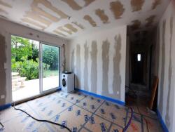 - Murs prêts à peindre : bandes de plâtre poncées,