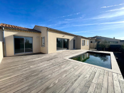 Située dans un quartier résidentiel recherché de L'Isle-sur-la-Sorgue, cette maison neuve aux prestations modernes saura vous séduire par ses volumes, sa luminosité et son confort de vie. D'une conception fonctionnelle et élégante, elle offre une belle pièce de vie salon / salle à manger, baignée de lumière grâce à une large baie vitrée exposée Sud-Ouest, ouverte sur l'extérieur. La cuisine américaine entièrement équipée, conviviale et moderne, est complétée par un cellier. Côté nuit, la maison dispose de 4 chambres, dont une suite parentale avec accès direct à la terrasse, comprenant dressing et salle d'eau privative. Les trois autres chambres se partagent une salle de bains équipée d'une douche et d'une baignoire, idéale pour une vie de famille confortable. Implantée sur un terrain clos de 600 m2, la propriété propose un agréable espace extérieur avec terrasse et piscine, parfait pour profiter des beaux jours en toute intimité. Construite selon la norme RT 2020, la maison bénéficie de prestations de qualité :
