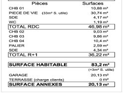 Garage 20m2+stationnement. Terrain 199m2.
