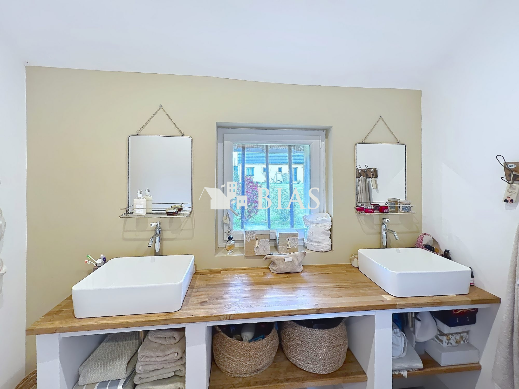 Quelques marches donnent sur une première suite (chambre, salle de douche) un WC, buanderie, et une chambre mansardée accessible par un escalier privatif.