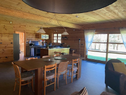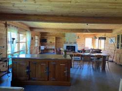Maison Ossature Bois de 2007, plain pieds, sur 2678 m2 de terrain dont une partie constructible, environ 900 m du centre village. Très bon DPE, tout à l'égout, double vitrage, isolation bois double madrier, volets électrique et bois. Chauffage central au sol électrique, cheminée à foyer fermée performante. environ 160 m2 habitable dont un salon/salle à manger de 85 m2. 3 chambres entre 12 et 16 m2, 2 salles d'eau, 2 wc. Une terrasse avec vue sur la campagne. Maison de famille, investissement locatif de vacances. Contact Pascale BLANC agent commercial immobilier tel 0750060050. pascale.blanc043@orange.fr, www.maurin-immobilier.com