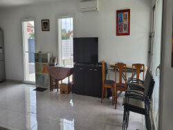 dans un secteur agréable proche des commerce, maison MEUBLEE de plain pied sur un terrain de 570 m² comprenant entrée, séjour, cuisine aménagée, 3 chambres dont une suite parentale avec salle de douche, salle d'eau, WC - place de stationnement. chauffage par pompe à chaleur disponible à partir du 20 février 2026