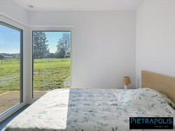 Construite sur un terrain de 3600 m², selon les dernière normes énergétiques, elle allie design moderne, confort et respect de l'environnement. Orientée Sud, elle se compose au rez-de-chaussée d'une grande pièce de vie très lumineuse de 40 m² avec sa baie vitrée coulissante de 4 m de long, une cuisine ouverte sur la pièce de vie de 10 m² avec un accès sur l'extérieur, une suite parentale de 11m² et sa salle de douche de 7m², une buanderie de 8 m², un wc et à l'étage 2 chambres une salle d'eau, un wc, une grande mezzanine avec une grande baie vitrée de 4m, ce qui assure une très belle luminosité Un garage de 21 m² et une verrière viennent compléter ce bien.