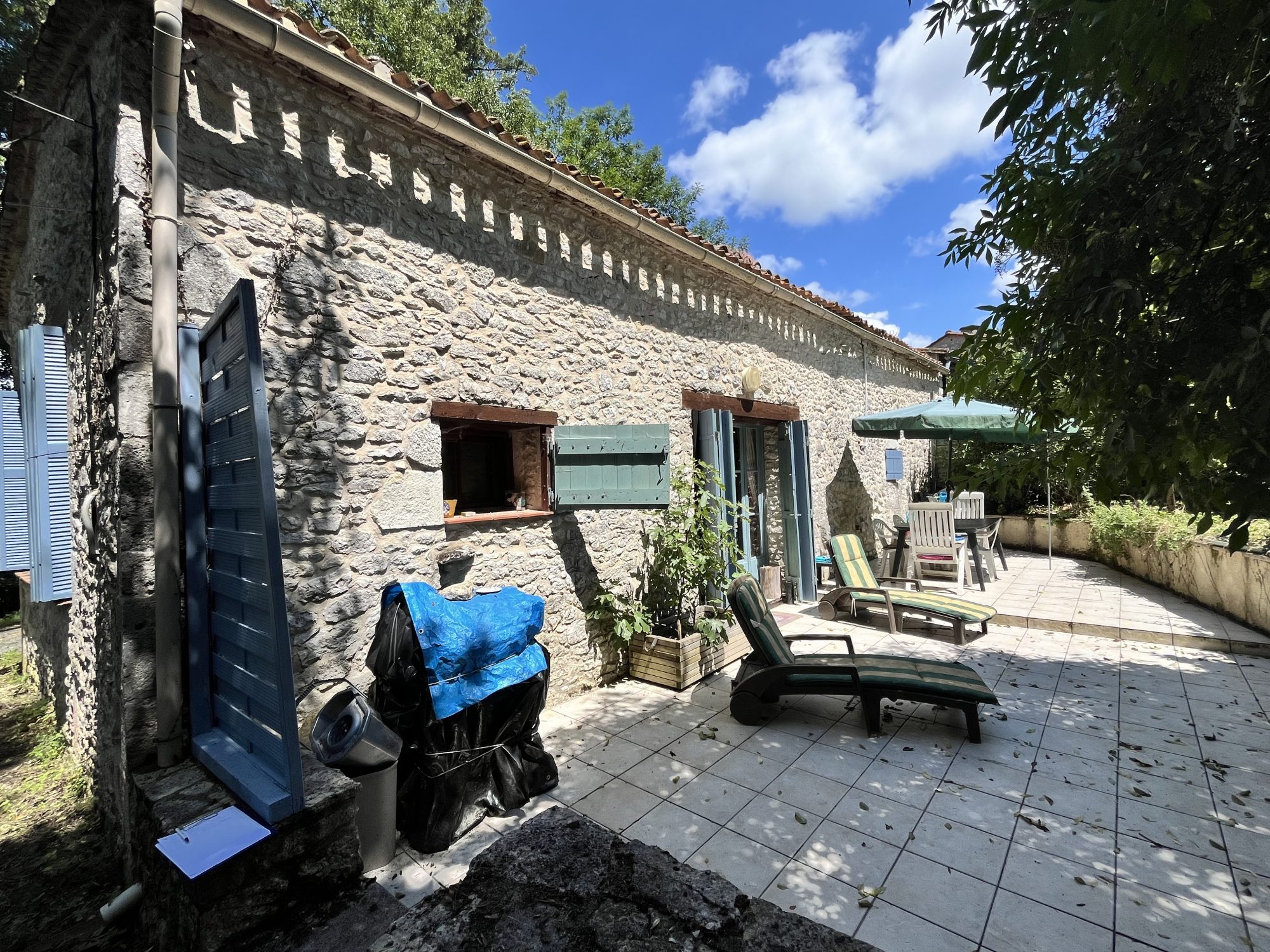 Maison pierre de plain pied en excellent état. Elle se compose d'une entrée, un séjour avec une cuisine ouverte, un dégagement desservant trois chambres, une salle d'eau, un wc séparé.Double vitrage PVC. Un garage attenant. Un jardin clos de 1120 m2 environ. Tout à l'égout.
