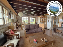 AYN- Maison pierre ancienne avec vue panoramique sur les montagnes, 196m² avec 7 chambres dont 100m² env en rez et 4 chambres en rez + séjour avec grande cheminée de 40m² sur terrasses et terrain plan autour , cuisine indépendante, deux salle d'eau, 2 wc, grand bureau/bibliothèque/salle de jeux, grenier. Dépendance attenante transformable en logt 25m² au sol + 1 niveau. possible- Cabanon, abri chevaux, abri voiture. terrain +Terrasse plane autour, et terrain en pente pour un total de 3029m² env. Travaux à prévoir, DPE E- Exclusivité - Honoraires à charge vendeur. Bien avec cachet et rare.